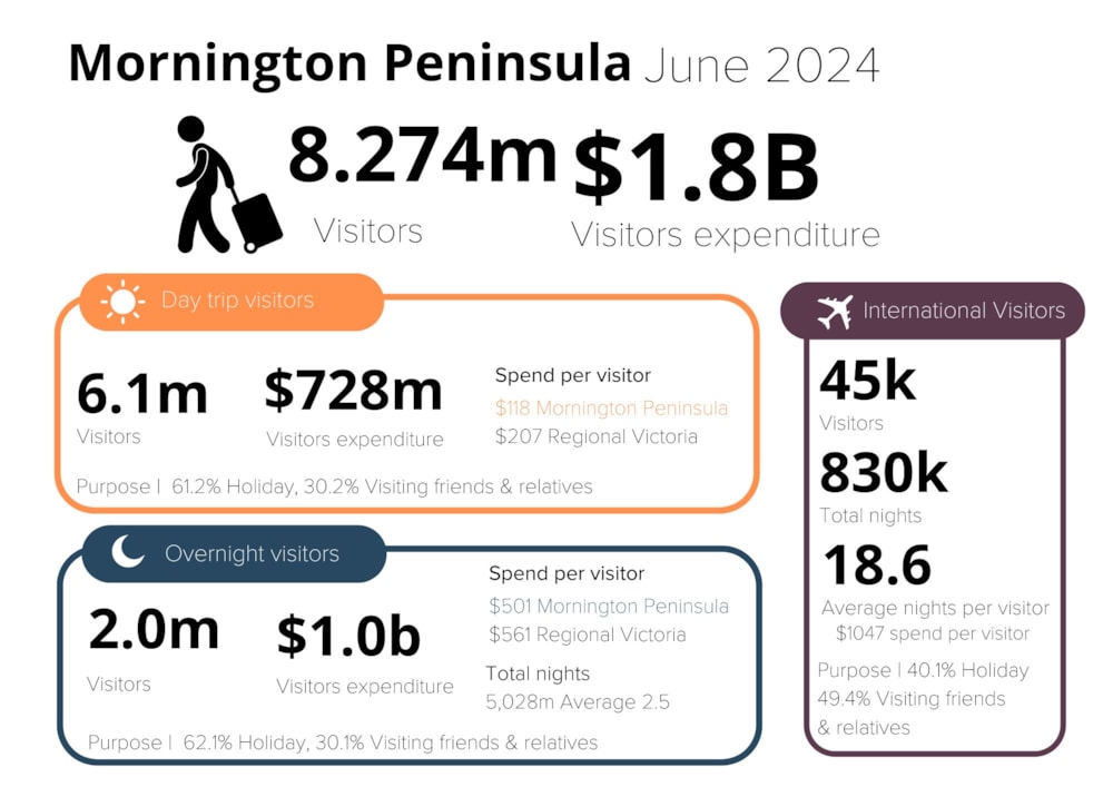 Here you will find research and insights examining the Mornington Peninsula tourism industry’s performance, from visitation and expenditure statistics to accommodation performance and economic measures.