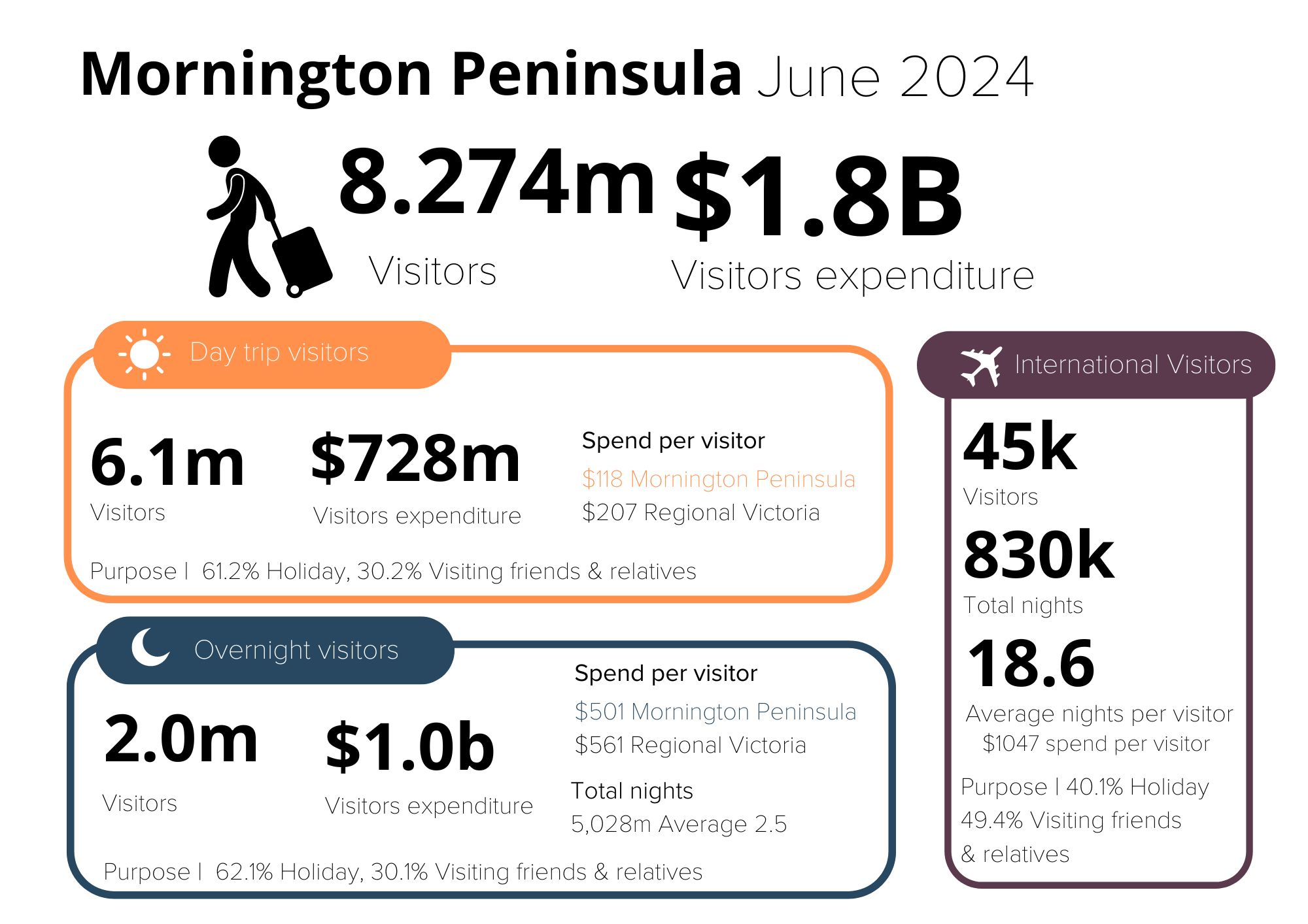 If you need assistance understanding the numbers for the Mornington Peninsula or Frankston + Surrounds please call Angela Cleland 5925 9346 or email angela.cleland@mprtb.com