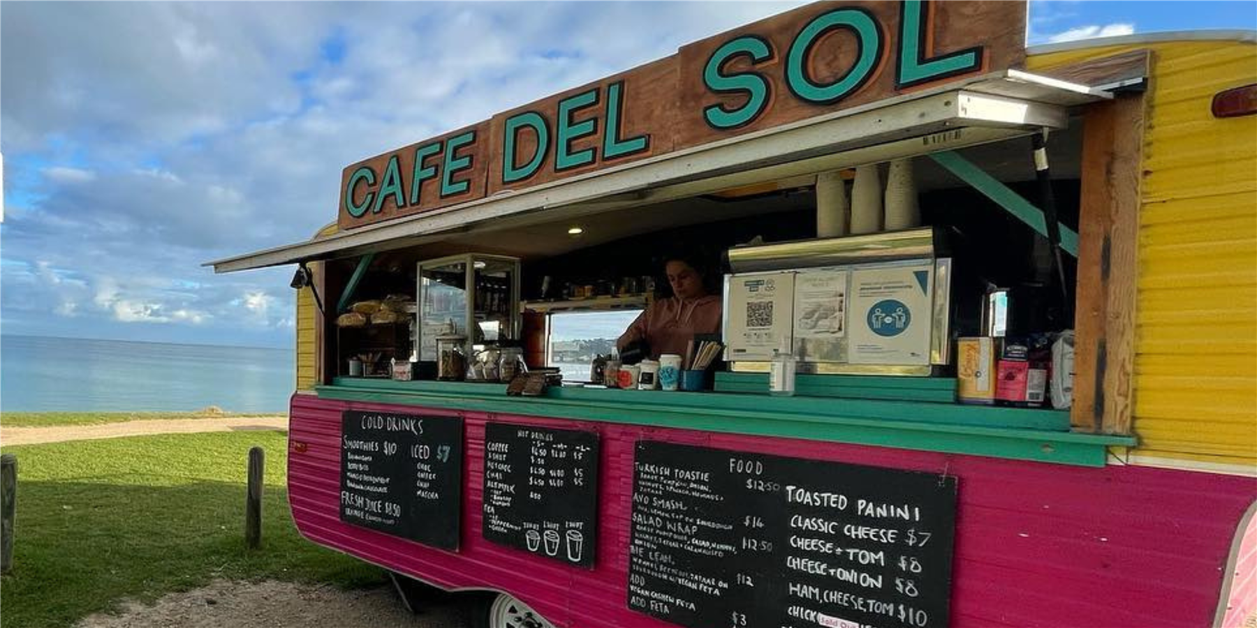 You won’t get any closer to the bay waters with the coffee pick up than at Cafe Del Sol in Safety Beach. The team inside the colourful caravan setup are committed to producing quality coffee, alongside some scrumptious takeout meals and smoothies. These guys really do have the best seats in the house!